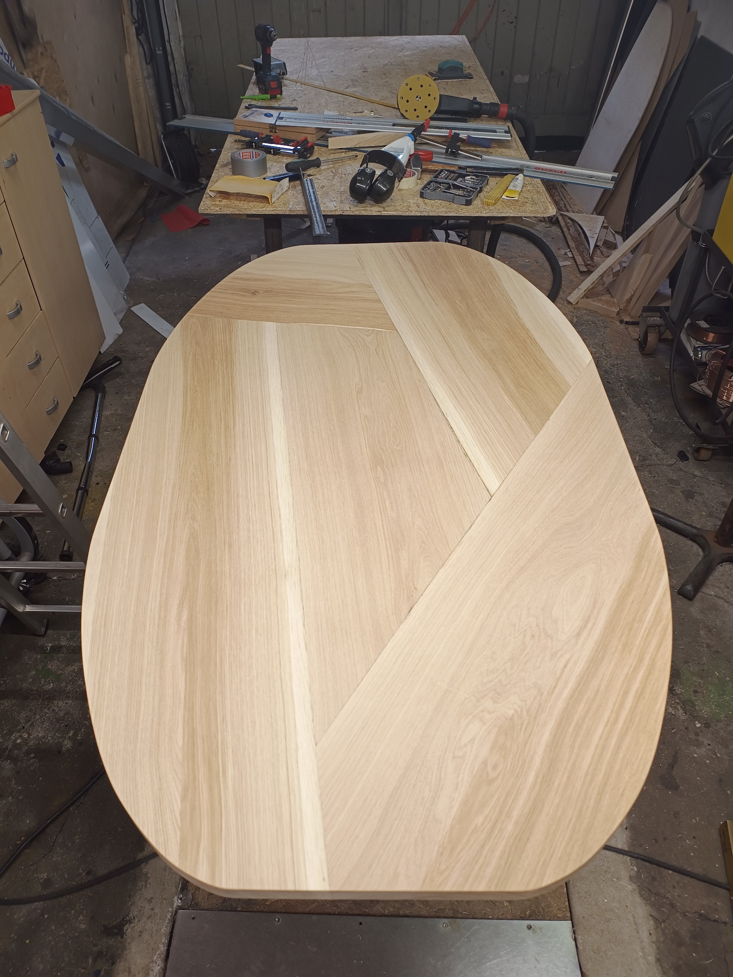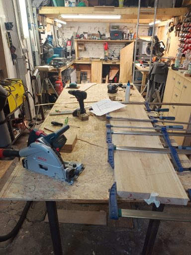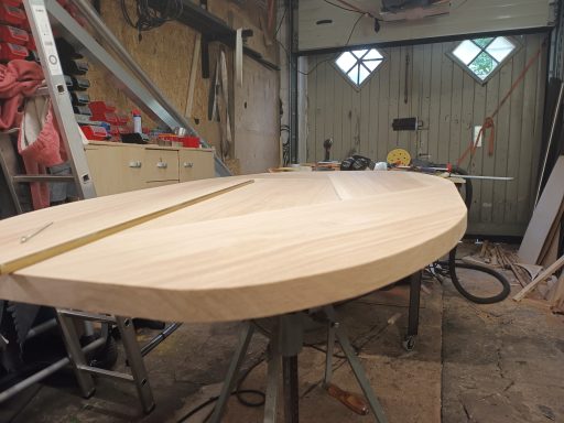Dieser massive Eichentisch aus Massivholz bietet Platz für rund 18 Personen und wurde von mir speziell für den Konferenzraum eines Unternehmens in Dresden entworfen und gefertigt. Von der ersten Skizze bis zur finalen Umsetzung entstand ein einzigartiges Möbelstück, das Funktionalität, Stabilität und ansprechendes Design vereint. Der Tisch ist nicht nur ein zentraler Treffpunkt für Besprechungen, sondern auch ein repräsentatives Element, das die Wertigkeit des Raumes unterstreicht