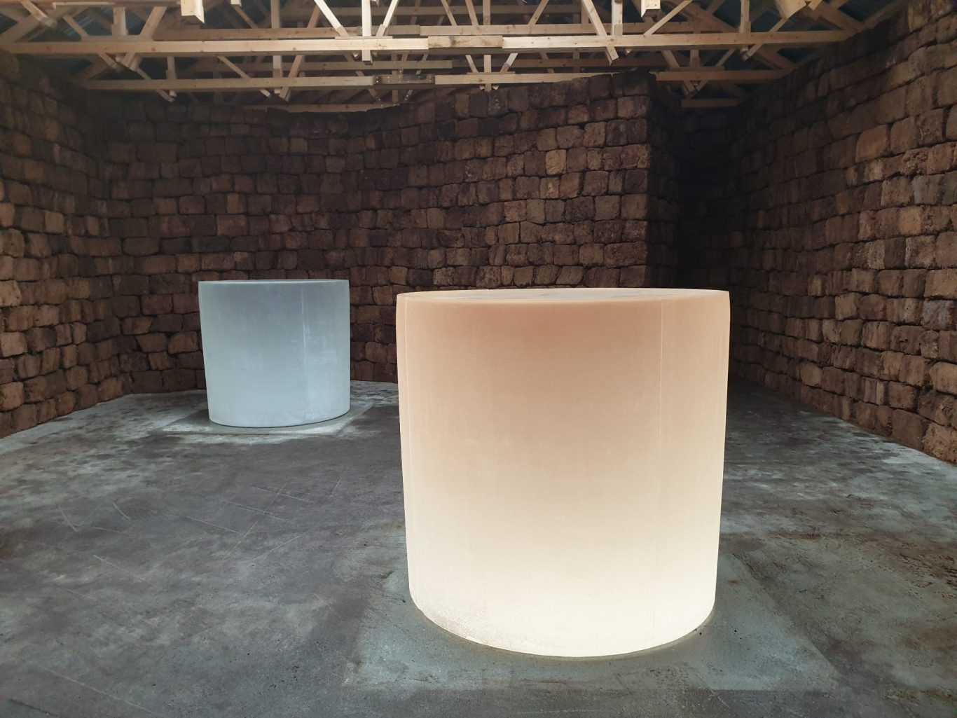Die Glasskulpturen stammen von der Künstlerin Roni Horn.