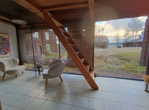 Hier hatte ich die Gelegenheit, auf einem ehemaligen Bauernhof in Norwegen, der heute dem Künstler Knut Wolt gehört, eine Glasfront zu planen und zu bauen. Das Projekt wurde in einem historischen Timberbau aus circa 1600 realisiert.