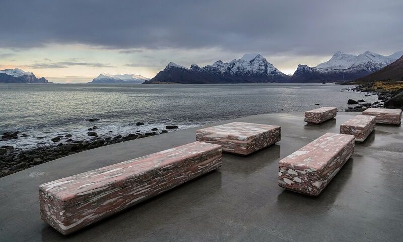 Ich erhielt den Auftrag der Landschaftsarchitektin Inge Dahlman (Asplan Viak), Sitzbänke aus Fauskemarmor zu erstellen und auszuarbeiten. Diese einzigartigen Marmorbänke entstehen für einen Rastplatz entlang einer der Nasjonale turistveger – den nationalen landschaftlichen Routen Norwegens.